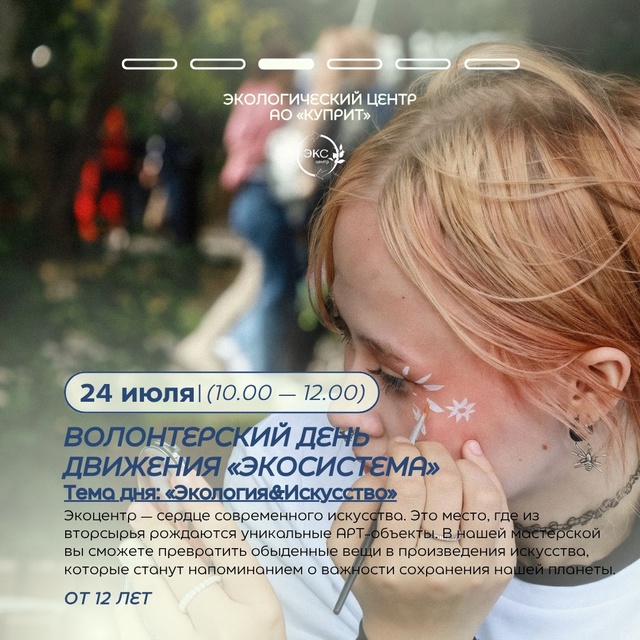Волонтерский день движения “Экосистема” Тема дня: “Экология&Искусство” Hourly Schedule Новый день Дата Июл 24 2025 Expired! Время 10:00 - 12:00 Расположение Экоцентр ул. Дерендяева, 64, Киров Телефон +7 (8332) 63-16-11 Организатор АО "Куприт" Телефон 63-16-11 Поделиться событием