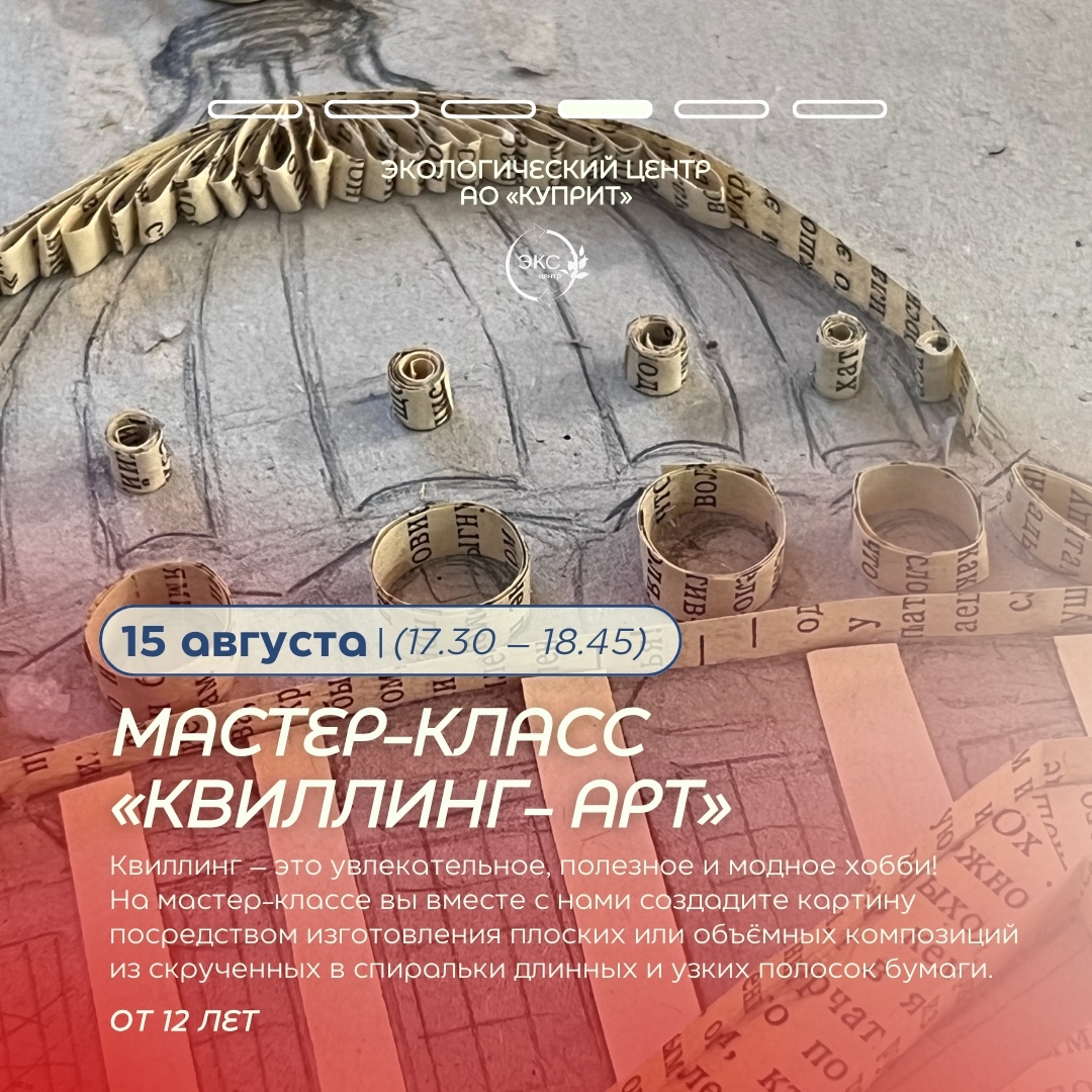 Мастер-класс “Мастерская квиллинга: вторая жизнь печатных изданий” Дата Авг 15 2025 Expired! Время 17:30 - 18:45 Расположение Экоцентр ул. Дерендяева, 64, Киров Телефон +7 (8332) 63-16-11 Организатор АО "Куприт" Телефон 63-16-11 Поделиться событием